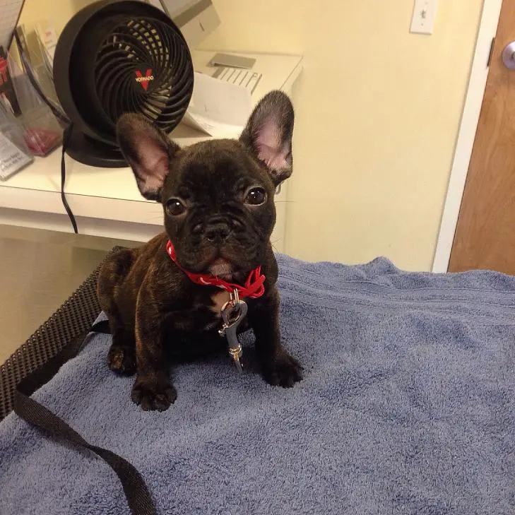 Danté went to the vet this morning and he was such a good boy! The vet assured me that noisy breathing although not normal in most dogs is normal in this breed. Basically the "norm" in the bulldog breed is abnormal. However, he does have a runny nose and some gurgling - which he attributed to a cold. He has no temp and is eating like a piggie. The vet said sometimes the stress of leaving the litter and traveling by car six hours can bring on minor sickness. He also said puppy immune systems at 10 weeks aren't very strong yet. Nothing they can do for it though, since antibiotics only treat bacterial infections.... And i should let it run its course and call if it gets worse or he stopa eating. Ugh, why me? Anyway, here he is putting on his good boy show. View attachment 3591