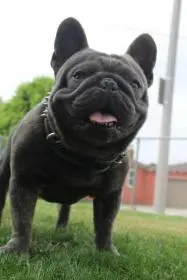 I have a picture of Buster with his 5 brothers and 1 sister and of course his mom. The second picture is of Buster's mom 2 days after having the litter. Next is the handsome OEB we thought was his dad, and finally little Buster at 12 days old. All we know about his actual dad is he's a sneaky, fawn colored Frenchie! The pictures go from right to left!