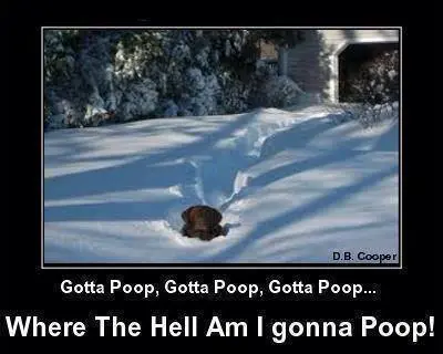 We have about 2 foot of snow in the yard now thanks to this lovely storm. Chelie can barely move / get around, but the OCD in him makes it impossible to just