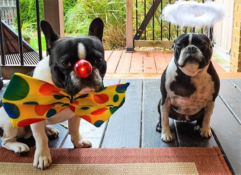 Wally the monster and Uma the mummy (small head problems for Bostons)