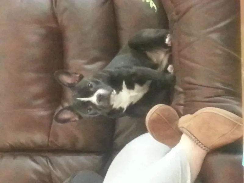 ahh now I think he looks like Hugo! When we went to see Hugo I mentioned his nose is slightly longer than expected the breeder said it was intentional to stop breathing probs etc. He didn't elaborate more and as we saw Hugo's KC registration papers etc I didn't really ask more. However several times I've said to Mike my hubby I don't think he is full frenchie. Doesn't matter he's cute as a button an love him to bits I suppose only contention would be the price paid and feeling a bit miffed at being ripped off. I have to say he doesn't snuffle or snore like Winston or do the Frenchie talking thing.......I always thought that Frenchies were a mix of bulldog, pug and Boston. I think Hugo has Boston in him .