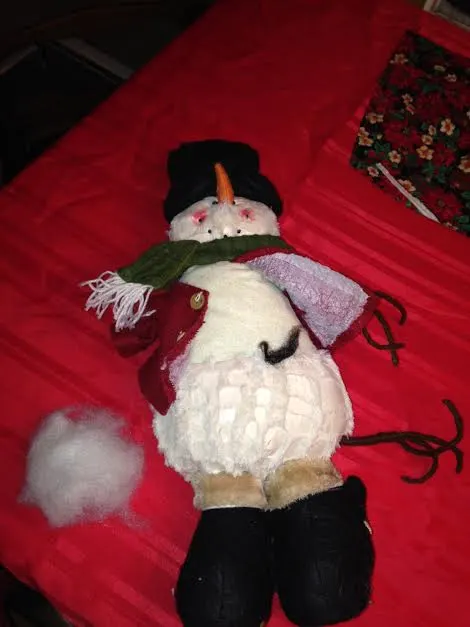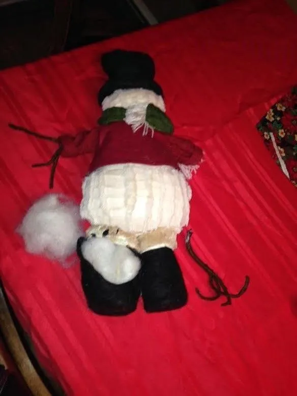 Well... we have our first Christmas decoration casualty... Unfortunately this may be one of many, since Marg seems to think the decorations were put up exclusivley for her...