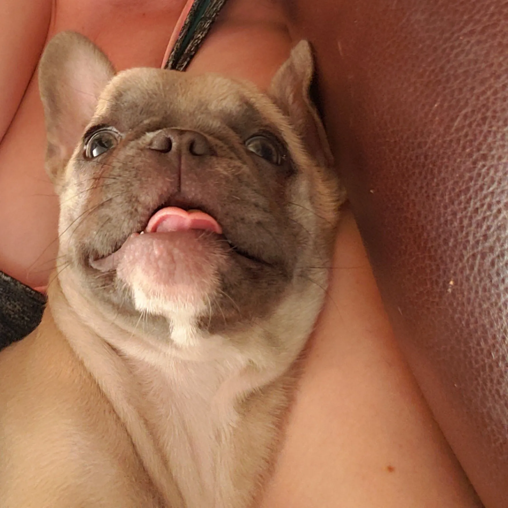 This is my Bella! I love her so much! She is deaf and was a premature pup that would've died if I hadn't fattened her up fast! She is still 3 Times smaller than her siblings, but shes the cutest baby ever! She is almost 4 months old and chews my fingers soo much!