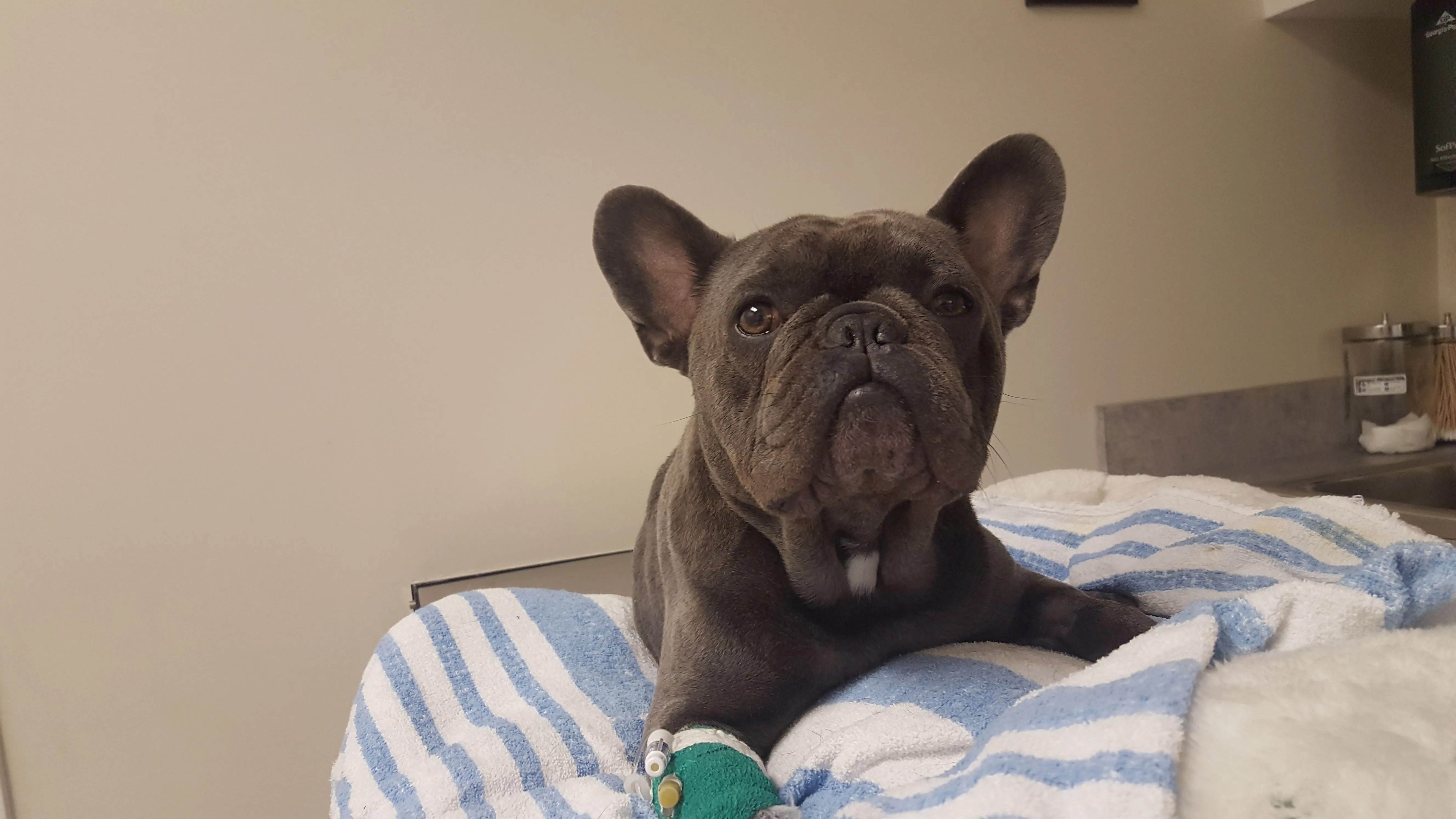 Our little boy is back! He is still very weak. We have to restrict his movement for a few weeks,