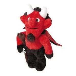 Margie's favorite Toy she got was from her Grandma and its a little Devil that talks and when you click his belly he says "the devil made me do it.... the devil made me do it... muhaha" She is obsessed with it and walks around with it in her mouth and keeps making it talk lol. It is so perfect for her...