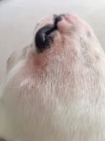 His skin is really terrible. He's scarlet, itching at any opportunity, has brownish eye muck, and he just generally stinks. He's dumping his coat and there is hair absolutely everywhere, even though I furminate him daily - sometimes more than once.