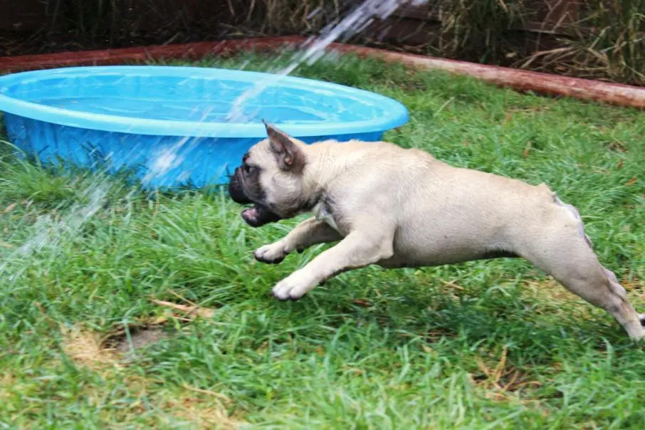 I can't find any of our videos of Bisou with the hose, but it's one of her favorite things! We have to lock her in the house in order to get any gardening done, because she'll literally jump in the pots to get to the water. Silly pups!