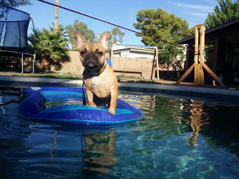 Q-Roux had a long day. We woke up in someone else's home (I'm house/dog sitting) then drove my dad to the lake (60 miles roundtrip) and stopped at Petsmart on our way home (to buy a new cat and dog bed). I then took her for a short swim, which she did really well and floated on the raft. I let her out and put the raft on the side to dry, then Q stood on the raft and anticipated it floating. I put the raft back in and she climbed onto it from the edge of the pool. What a silly and brave girl!