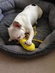 Dexter is so destructive with his toys it's unreal. I've just bought him a Tuffy squid which is meant to be hard wearing, so we'll see. He takes great pleasure in abusing his toys! He's also not great with puzzle things. He gets frustrated with them before any treats come out - zero patience!